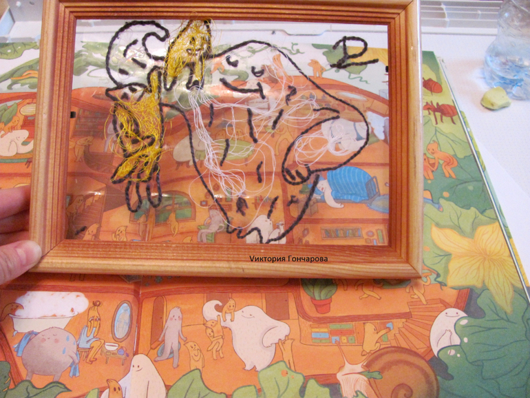 Увлеклись с ребенком искусством ниткографии, и "наниткографили" одного из героев книги. Но не совсем в традиционной технике - вообщем показываю)