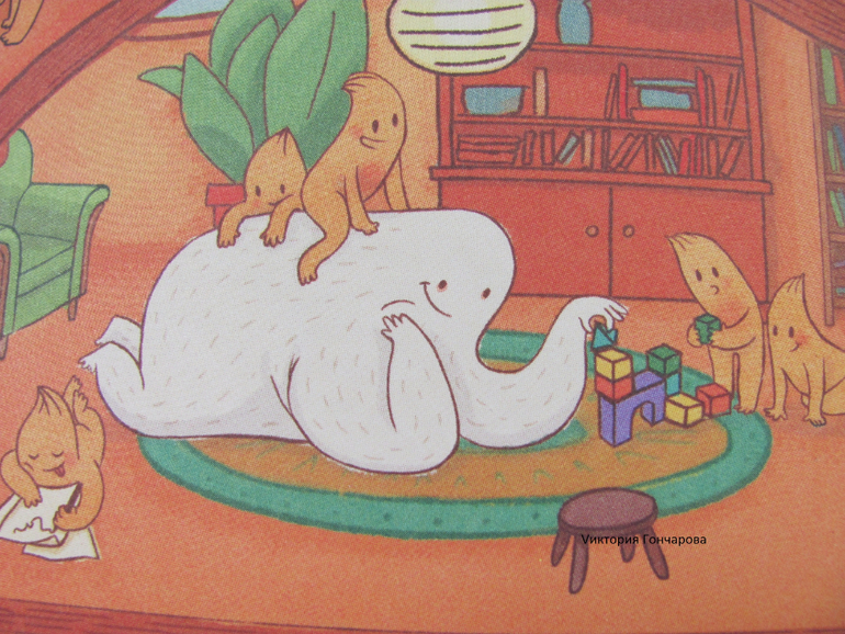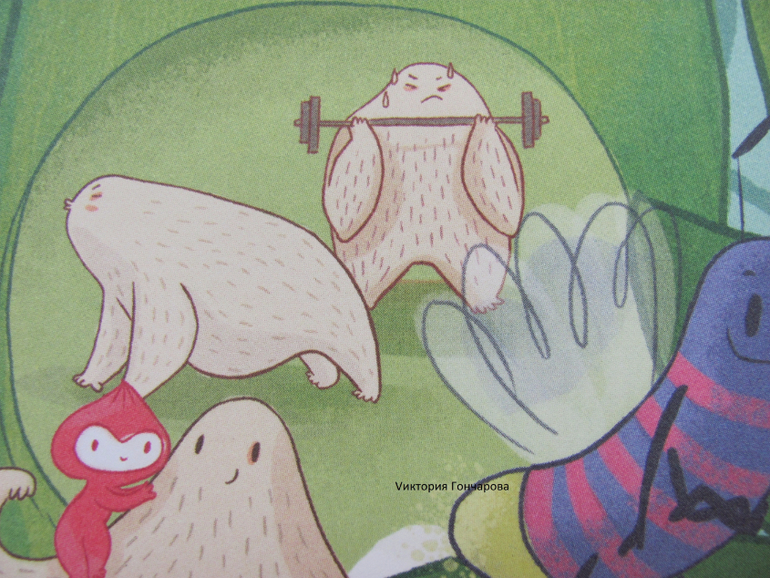 У нас это был один из любимых моментов в книге - силач Растительный Белок поднимает малышей.