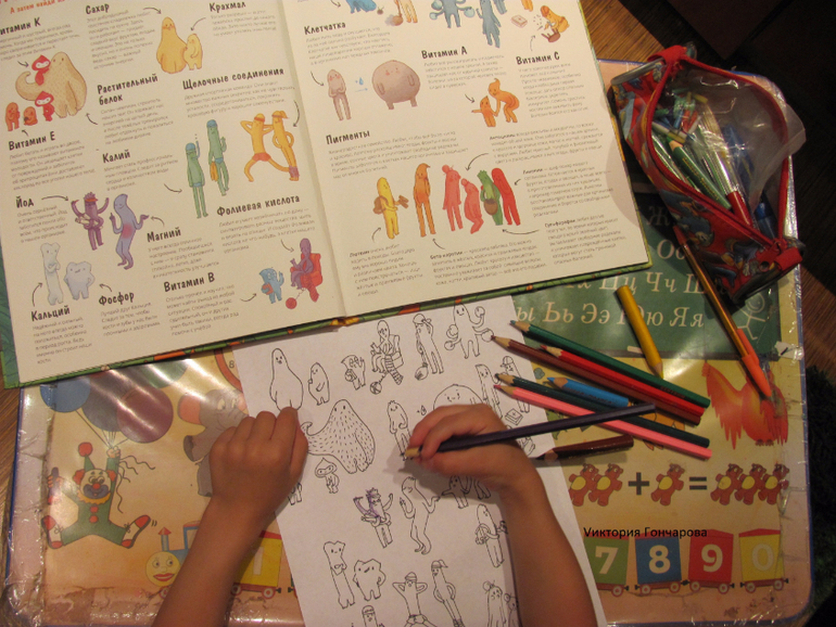 Подытожу - книга нужная, во всяком случае для нас очень даже нужная. Ребенок носит эту книгу в сад - а это для меня большой показатель. К тому же она не только знакомит ребенка с витаминами, но и развивает дальнейший интерес к этой теме. Провоцирует ребенка на пищевое знакомство с продуктами, которые он не любит или не пробовал, но с продуктами необходимыми для нашего организма. И последнее - это книга с кучей историй, которые ребенок додумывает и озвучивает самостоятельно. Да и я узнала много нового из этой книги.