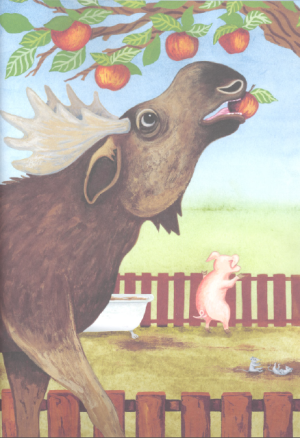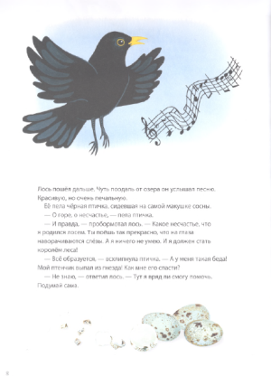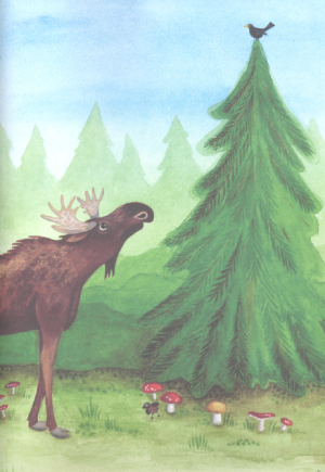 Остальные иллюстрации в книге вполне приличные. Вот тут лось помогает птичке...