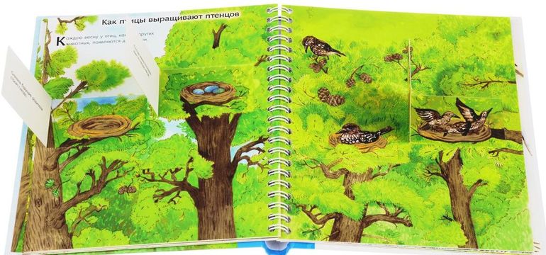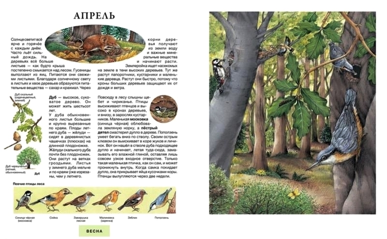 Книга очень информативна - ребенок узнает про то, какие бывают леса, какие в них растут деревья и какие животные обитают, как получают древесину и что из нее делают, какие плоды растут на деревьях, и даже познакомится с картинами известных художников, на которых эти самые деревья изображены.