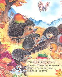 Белка знакомит нас с лесными жителями, для каждого иллюстрация (причем вполне приличная) и небольшой стишок.