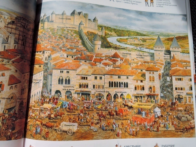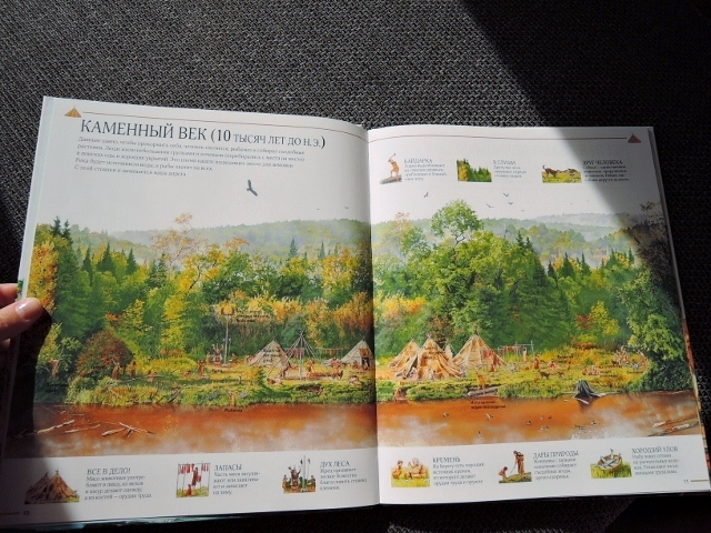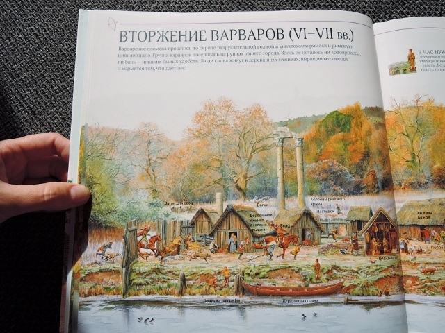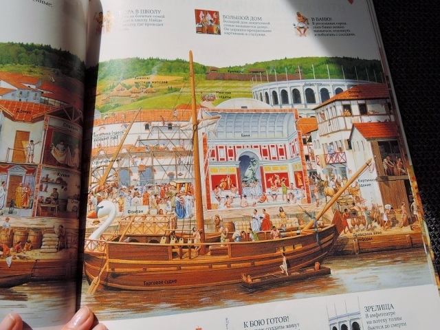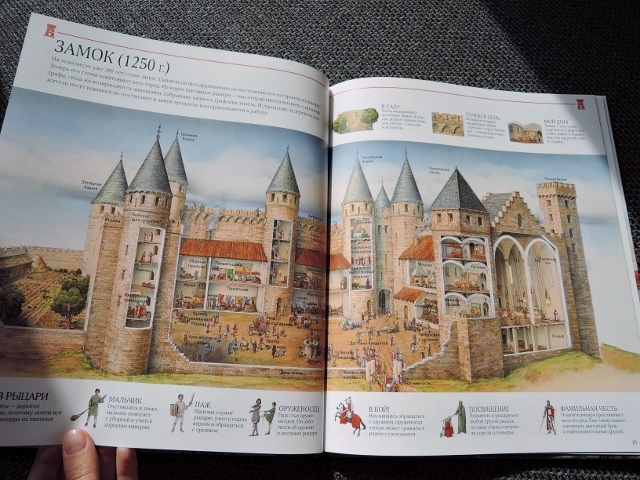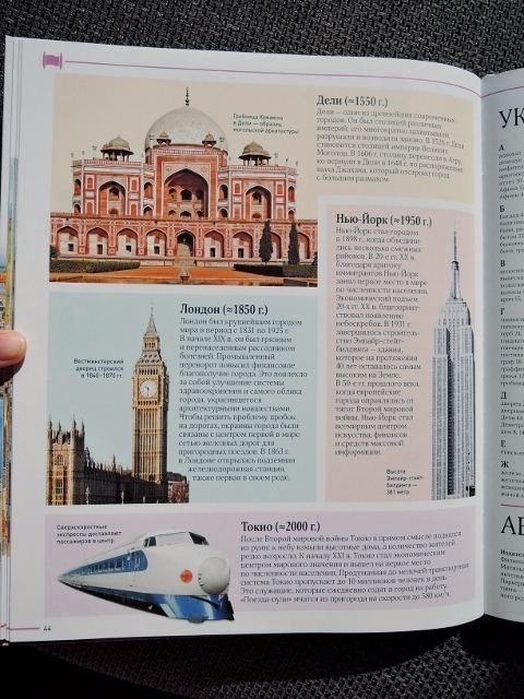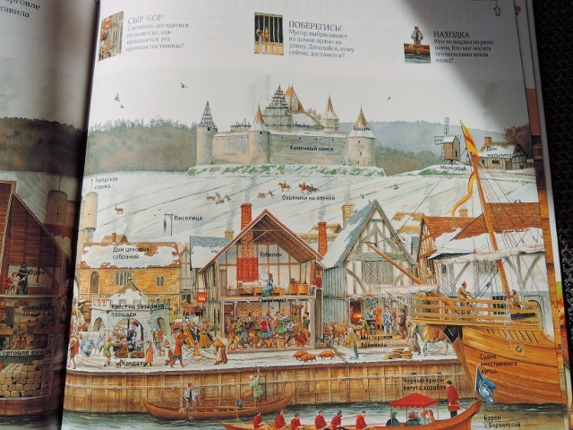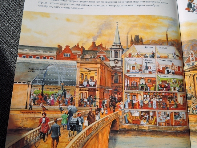 Очень подробные и красивые иллюстрации, можно проследить как менялся город в истории. Способствует развитию словарного запаса.