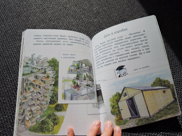 Так как я люблю архитектуру, то ожидание к следующей книжке у меня были высокие, наверное поэтому я разочарована. Насколько красивая сочная картинка снаружи, настолько неяркие нечеткие картинки внутри. Текст еще не читала, поэтому по содержание сказать ничего не могу. Даже на фото выглядит лучше, чем на самом деле.