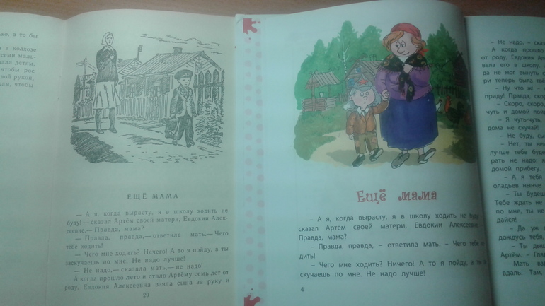 А. Платонов Еще мама - нежная история про мальчика, который целый день думал, как там мама без него. Как мама и учительница помогли преодолеть его страхи и учительница стала второй мамой. У нас оказывается была уже эта история, я просто ее пропустила.