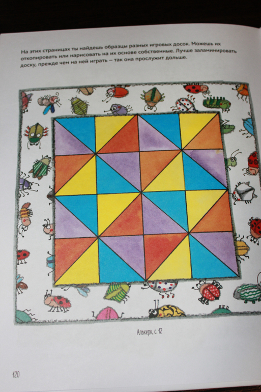 В книге собраны игры со всего света и честно я наделялась там увидеть какие нибудь русские интересные игры про которые я не слышала. Часть моего желания, можно сказать, сбылась. В книге есть одна единственная игра из России. Как вы думаете какая? Нет не горелки и не золотые ворота или ручеек и не у медведя во бору. А русские шашки. :)) Понятно что автор книги европеец, но все равно немного обидно. :))