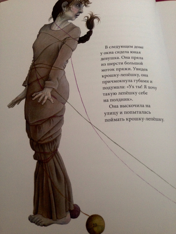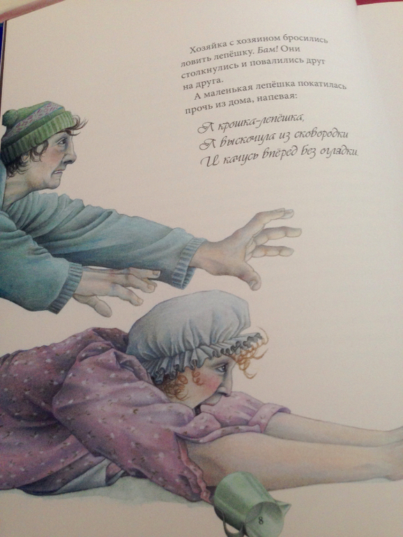 Начали читать , читаем первую страницу дошли до девушки и тут детеныш поняла, что " Это же Колобок " и дальше пошла веселье и сравнение