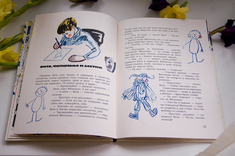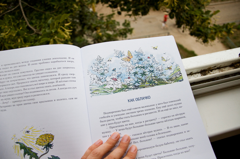 «Желтый, белый, лиловый». Кажется, эта книга создала для лета. Или лето для нее. Семка очень любит про цветы читать, так что книгу мы прочитали за два вечера. И о одуванчике-комнатке, и про густой подмаренник (так вот как они называются!), и, конечно, про травку-пупавку. Достойная книга, важная.
