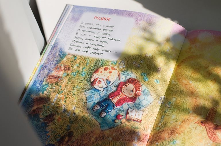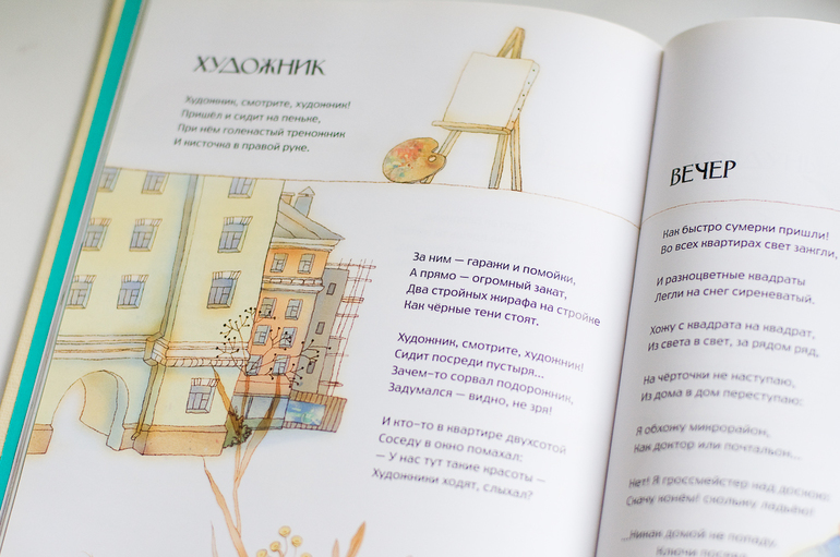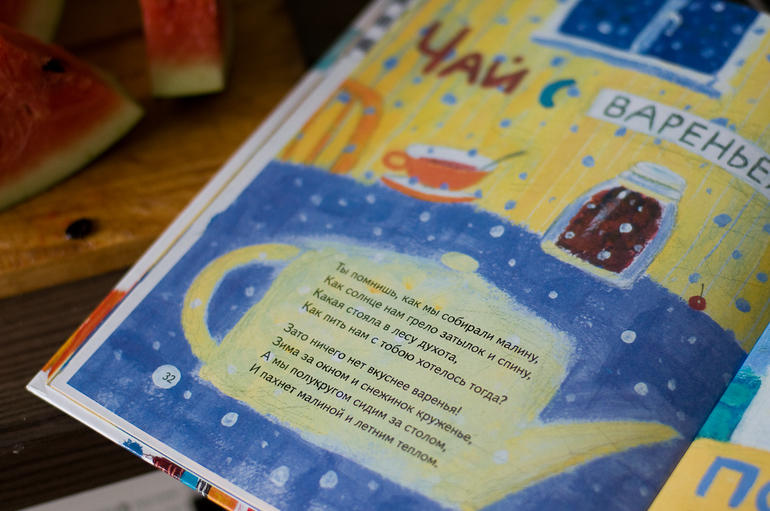 А еще чудное стихотворения про пейзаж, натюрморт и портрет, про два листа, про чай с вареньем, про кружку, про скучающего дома котенка. Невозможно передать все волшебство этой книги. Найдите, прочитайте.