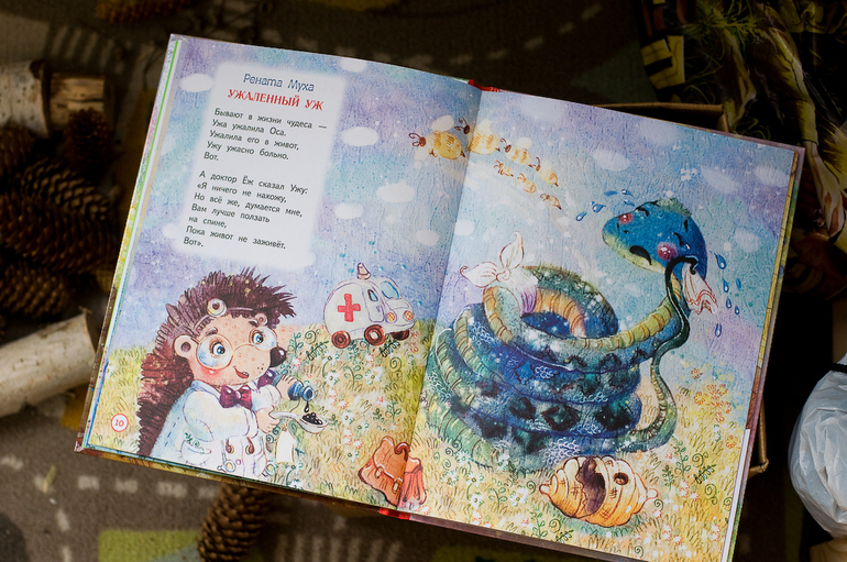 Семка мигом выучил добрую половину этих стихов. Они тут все короткие, очень удобно. А иллюстрации-то какие! У Уж мне здесь очень симпатичен, читали это стихотворение с разными картинками, но это лучшее.