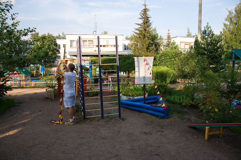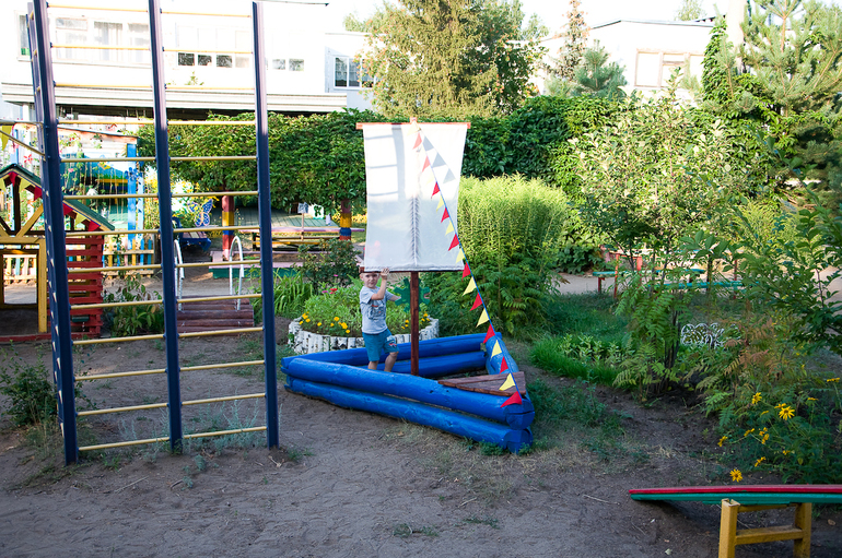 За июль мы успели отремонтировать детскую площадку в саду. Да, есть у нас такая повинность, отбатрачили.