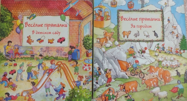 Доросла моя девочка и до этих книг. Вернее она и раньше бы справилась с нахождением предметов.Но я не долюбливаю подобные книги, потому что напрочь не умею сочинять по ним дополнительные истории. Собственно поэтому они здесь и оказались-пытки вымучать из себя сочиненьице сокращены до минимума)