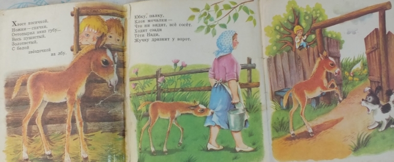 Это книжки-ширмочки, очень уж тонки. Их бы на картоне, другое дело. Ясе больше всех про жеребенка нравится и мне тоже. Остальные есть и у нас в сборниках. Впрочем и "Жеребенок" есть.. Поэтому скорее всего отдам, а про жеребенка укрепить ,пожалуй, надо.