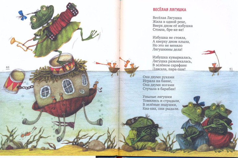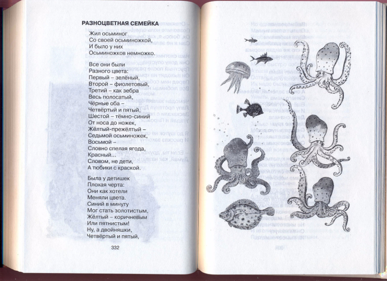 5. "Веселые чижи. Стихи детских поэтов" - тонкий офсет, черно-белые рисунки, но изумительное содержание. Моя дочь, в отличие от меня не визуал и с большим удовольствием может слушать не глядя - а тут есть что послушать. Впервые познакомила ее и с Хармсом, и Сапгиром и с многими другими именно благодаря ей.