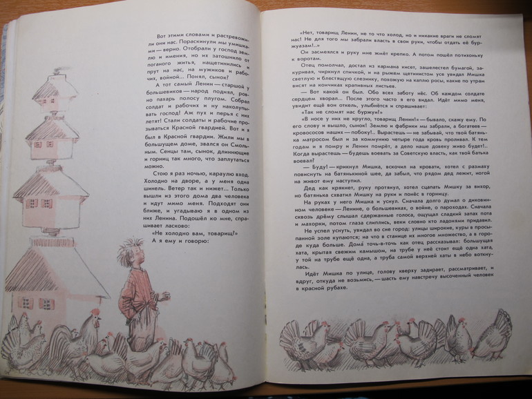 Заметила ещё такую особенность книги, изданной Детской литературой. В ней иллюстрации ко снам Миши нарисованы красным цветом, что мне очень понравилось.
