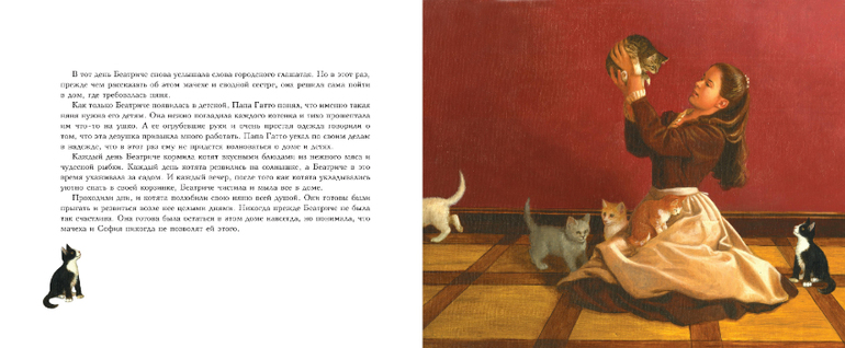 С удивительным поворотом сюжета, абсолютно сказочным концом и изысканными иллюстрациями эта итальянская сказка несомненно будет иметь успех у всех любителей и хозяев кошек и у всех неисправимых романтиков.