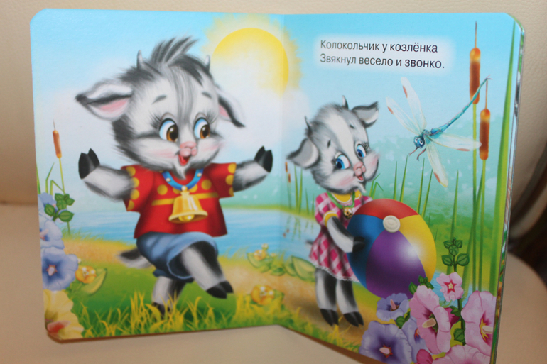 Мне кажется, все дети любят книги со звуками, а пройти мимо этой книги я не смогла, т.к. мой Ярик еще и обожает песенку "Топ-Топ-Топотушки" и танцует, когда ее слышит, поэтому данная книга нас очень выручила в дороге.