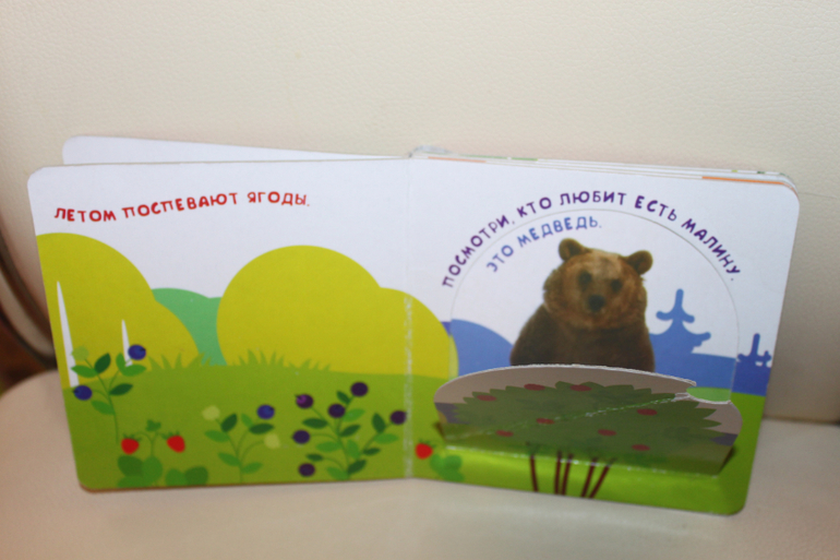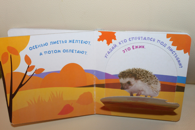 Еще одна книга с окошками, которую обожает мой ребенок, здесь животные прячутся в кустах, в листьях, в снежном сугробе. Ярик каждый раз удивляется, когда открывает окошко))почти не расстается с этой книгой, а в поездке она очень удобна, т.к. маленькая и компактная.