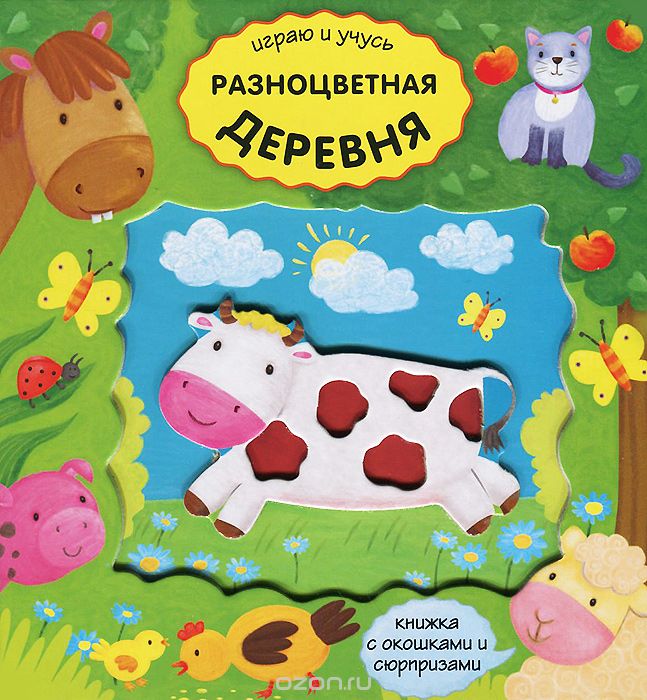 -"Разноцветная деревня" - эта книга полное разочарование, написано, что она с сюрпризами (правда, непонятно, где они) и окошками, но по факту окошко только одно , если это вообще окошком назвать можно, ребенок только бесился и плакал, в итоге я ее убрала подальше и мы ее так и забыли в самолете