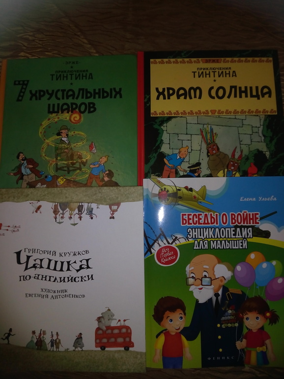 Итак, "Тинтина" просил старший сын. Он перечитал все, что было у нас про него. Весь роман, все три книги и альбом по фильму. Просит ещё купить, но я пока держусь, дорогие книги. Сын две за один день прочитал.