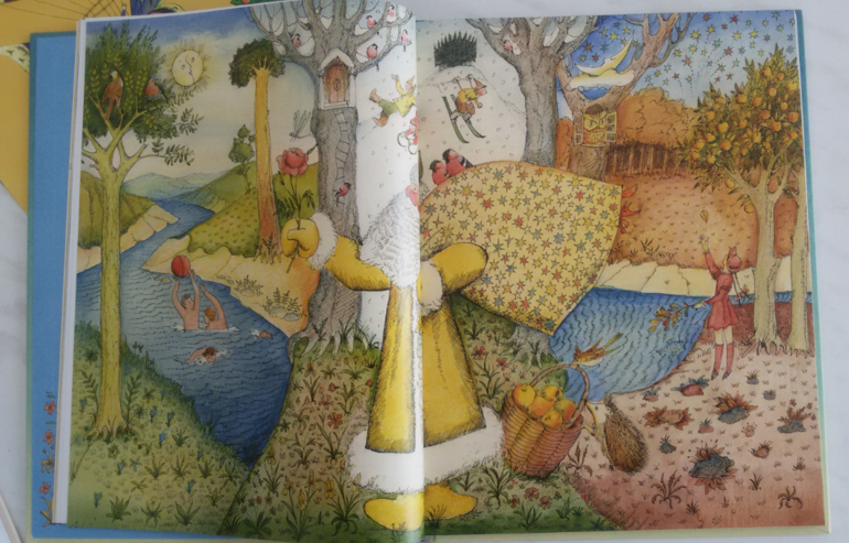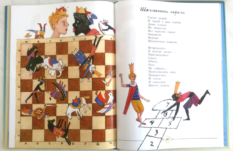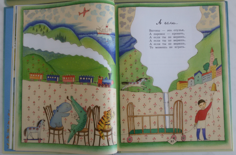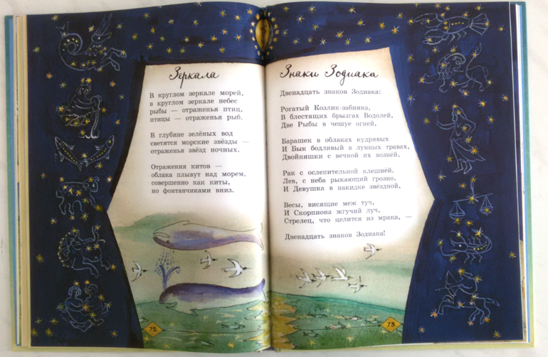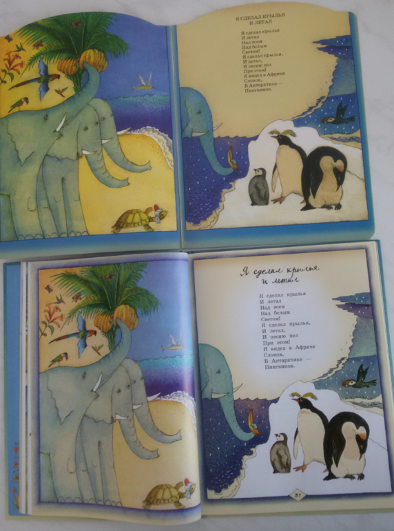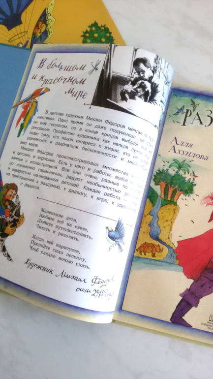 У нас уже была дома тонкая книга со стихами Романа Сефа "Я сделал крылья и летал" от издательства "Центрполиграф", и сын, и я, ее нежно любили, двухлетний ребенок с замиранием слушал чудесные стихи и разглядывал волшебные иллюстрации. Очень я жалела что эта книжечка в урезанном варианте. Есть у нас Сеф от Речи, но все же там иллюстрации для деток постарше. И вот издательство Лабиринт сделало огромный подарок маленьким и большим читателям, издав сборник стихов с иллюстрациями Федорова, с полным вариантом Сефа, да еще в компании двух замечательных поэтов - Аллы Ахундовой и Григория Кружкова. На мой взгляд качество печати лучше чем в тонкой книге Центрполиграфа. Цвета более чистые и звонкие. Поистине волшебная книга получилась у Лабиринта. Ниже представлю фото страниц, сначала иллюстрации к стизам Ахундовой, потом Сеф и Кружков. Сефа сравнила с изданием Центрполиграфа.