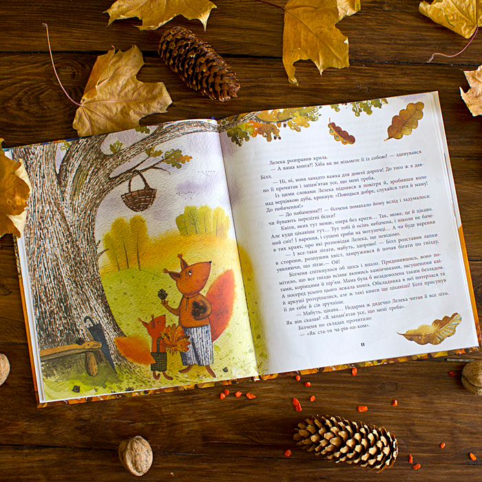 Маше дико понравился главный герой и его вечные приключения )) Уже договорились - как только начнется настоящая красочная осень, идем с ней гулять в парк и считать "золотые" листочки, как бельчонок делал в книге) Для меня нет весомее доказательства, что книга Маше действительно понравилась, если она хочет быть похожей на главного героя.