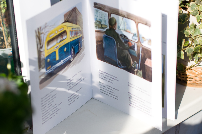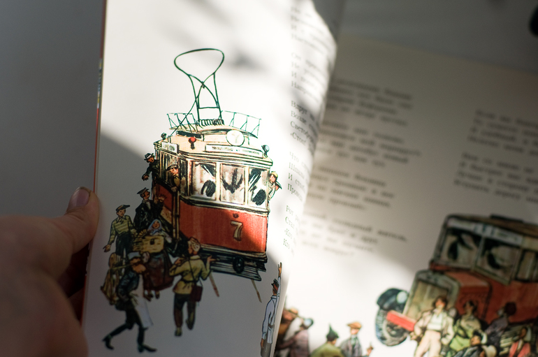 . Трамвай берите, не пожалеете, троллейбус более советский, но тоже приятный. Есть о чем поговорить и с младшими, и с детками постарше. Вроде и ненавязчиво, но прослеживается ноты самостоятельности, ответственности. Малыш в книге сам едет в детский сад, мама на работе. Конечно, немного жестковато для нашего времени, но эту мысль тоже можно обсудить.
