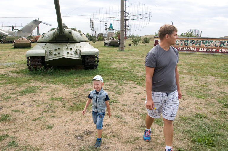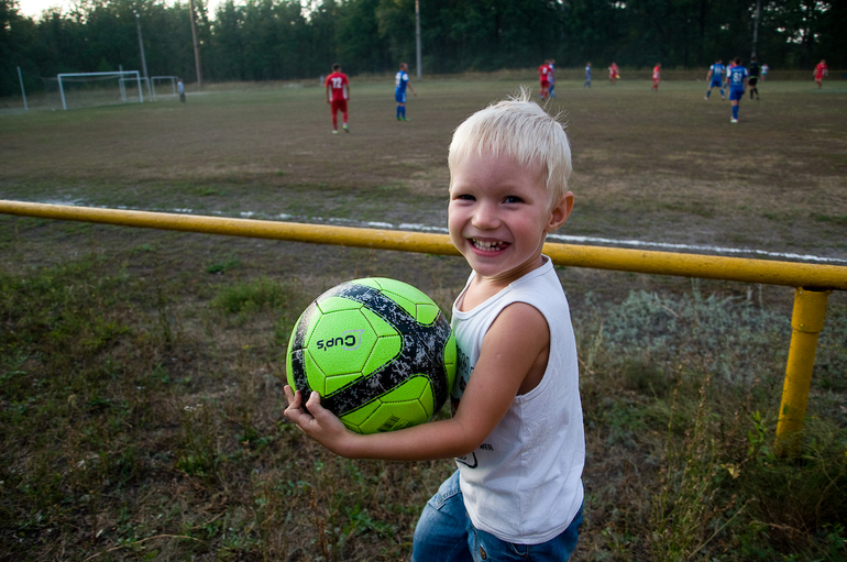 Семка долго смотреть на бегающих дядек не стал, а взял мяч и сам пошел играть с папой. Даже импровизированные ворота нашлись, не из березы, но все же.