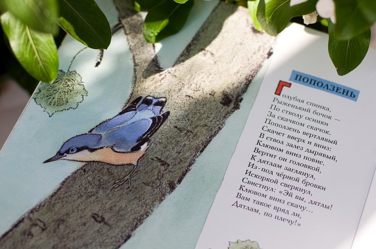 Птицы - наша зимняя тема. Конечно, стихи для восприятия немного сложноваты, но в них есть своя прелесть. А какие иллюстрации птиц! Есть и наш любимый поползень.