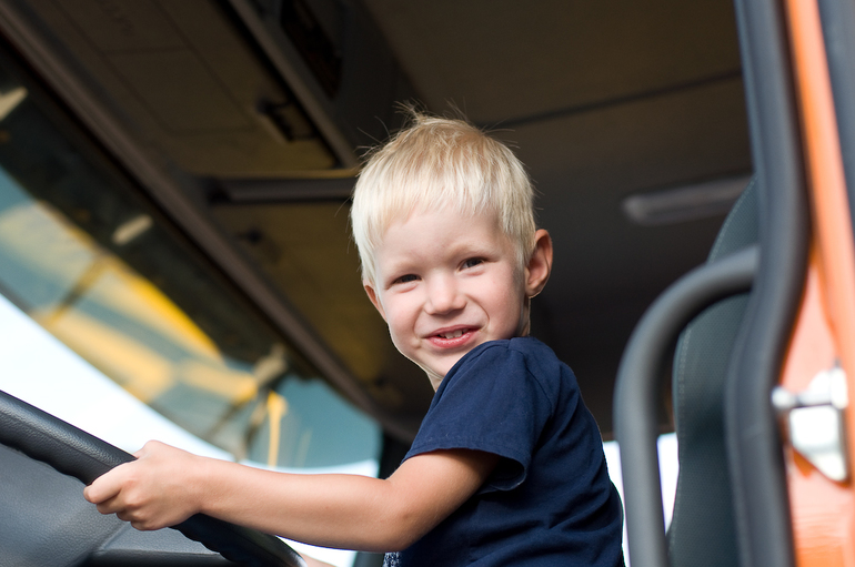 и в дедушкиной пожарной машине (на фото правда не она, а снегоуборочная, но тоже масштабный транспорт),