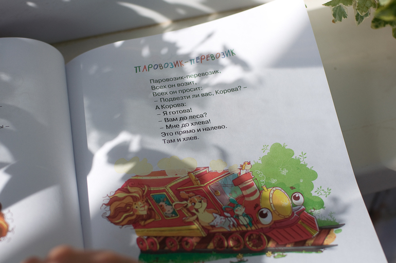 И все в там духе. Картинки хоть и своеобразные, но милые. Мне глаз не режут. А Паровозик-перевозик Семкино любимое, конечно. Особенно эти слова: