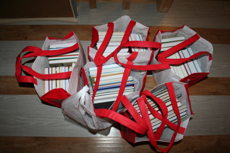 Кстати детская коляска очень пригодилась для перевозки книг. Без нее бы мы эти 5 сумок не дотащили бы просто до машины.