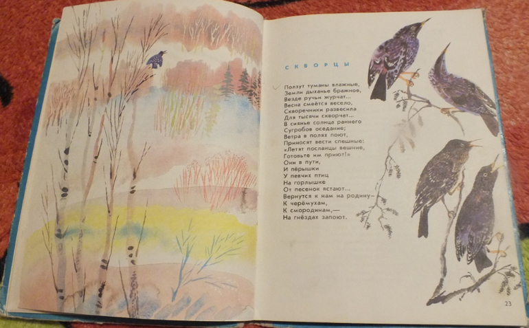 Да, Чарушин бесподобен в этой книжке. И стихи познавательные, доя меня стало новостью, что супруг Барто тоже писал. Люба, а в новой книге чьи иллюстрации? имею ввиду "птичьи разговоры")