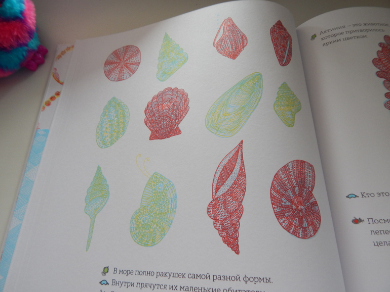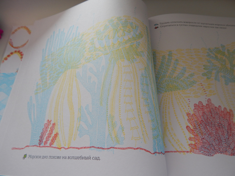 Книга "Кто прячется в море?" очаровала всех, кто брал её в руки - от маленьких детей до взрослых. Когда я шла с посылкой домой, около подъезда гуляли соседи с детишками, попросили показать что интересного я получила, и зависли над этой книгой, отбирая друг у друга "волшебные окошки", чтобы получше рассмотреть все секреты моря))