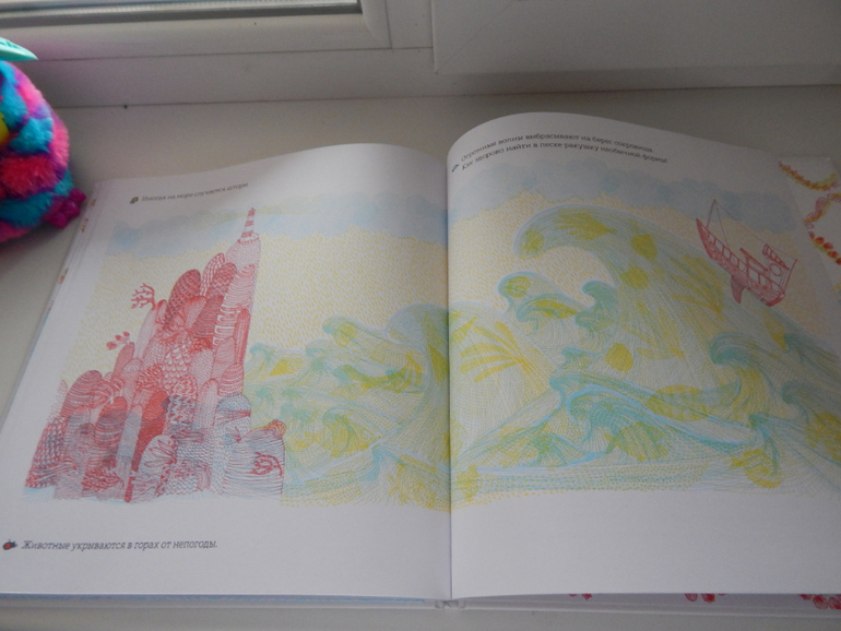 Позже мы рассматривали книгу с мужем, толкая друг друга: "Смотри! Смотри! - Тут черепашки поплыли, а тут пингвины на льдинах, а тут груз на корабле, а тут рыбки, а тут невод с уловом!" А когда от бабушки забрали главного читателя, то тут было ещё больше восторга!