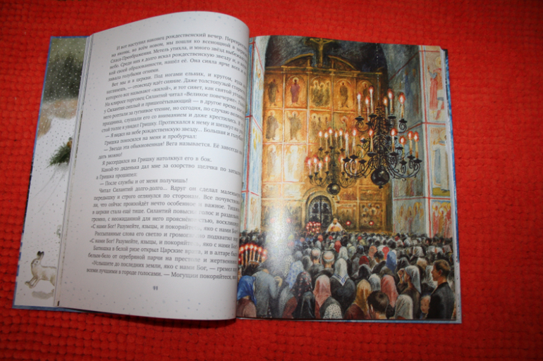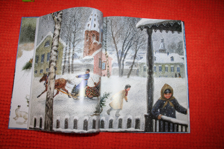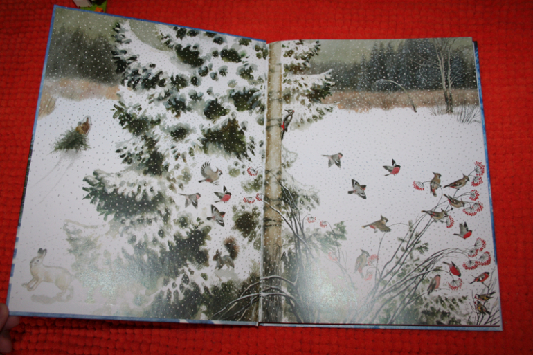 Похвастаюсь Новогодней елкой. Не могу не показать. Ляпота. Илл много, в том числе и полностраничных, печать Латвия. Тираж по моему 7000 экз. Подозреваю что к Новому году книгу раскупят. Обложка не плоская, вся утыкана золотыми точками. По содержанию пока ничего не могу написать, но зато могу сказать, что когда я ехала на выставку, думала что главной книгой будет Волшебный короб, все таки самая дорогая из последних новинок Речи, но нет для меня главной покупкой стала Новогодняя елка. Хотя Волшебный короб красив по своему, но елка визуально меня радует пока больше.