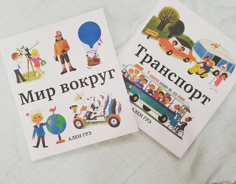 Знакомство началось с энциклопедий Мир вокруг и Транспорт. Это книги французского иллюстратора Алена Грэ.