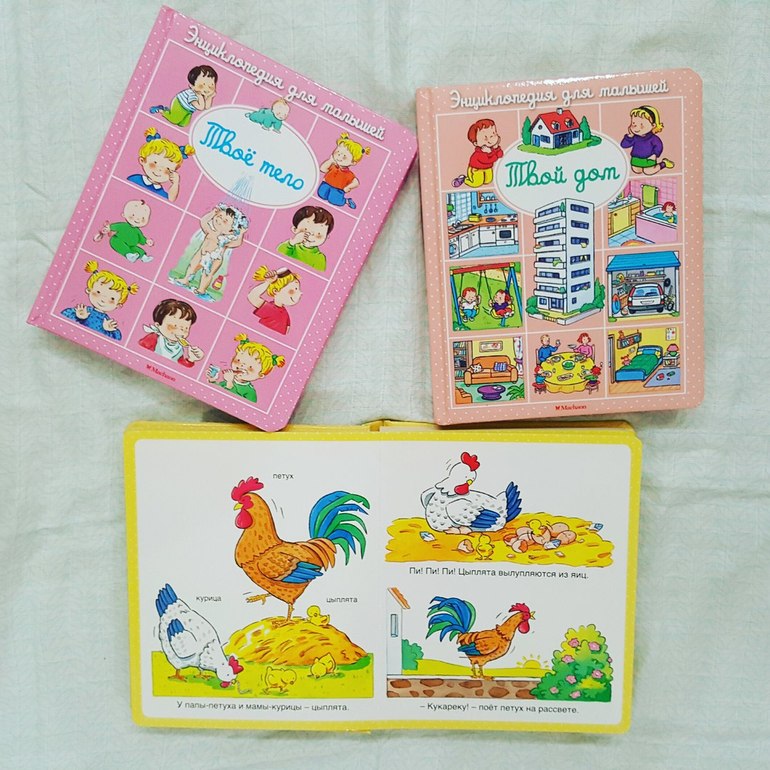 Сделаны книги очень качественно. небольшой формат; плотные закругленные картонные страницы, огромное количество ярких иллюстраций. Книги невозможно отгрызть, память, порвать.