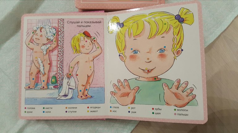 Рассматриваем и листаем эти книжки с 6 месяцев. Большой плюс в том, что их в буквальном смысле можно использовать с рождения и как минимум до 3 лет.