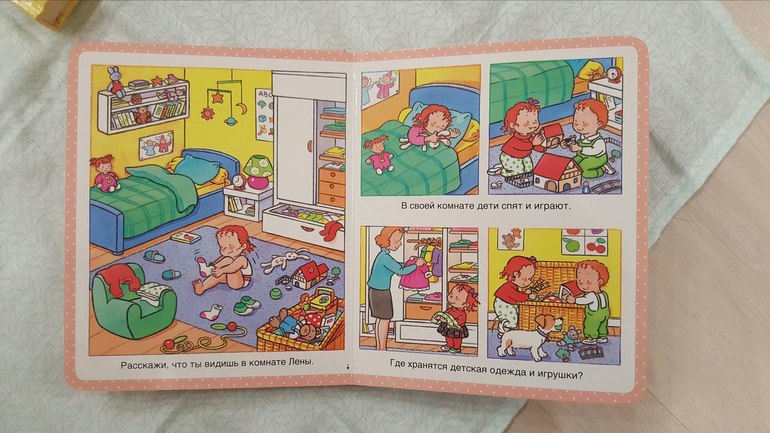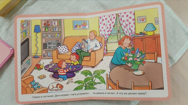 Изображено много полезных и интересных ситуаций. Например, что делают дети, чем занята мама на кухне, как нельзя поступать и т.д.