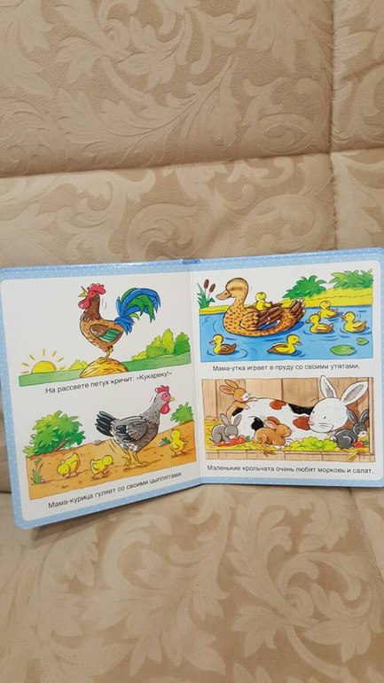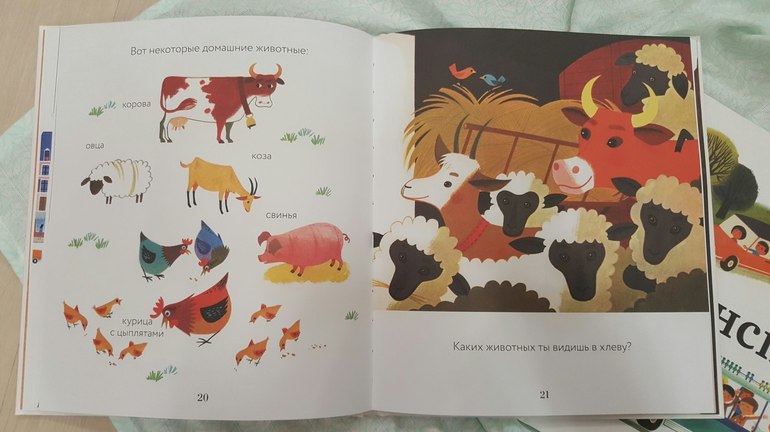 Картинки яркие и понятные. Аня очень любит странички с курочками и петушками, свинками, лошадками.