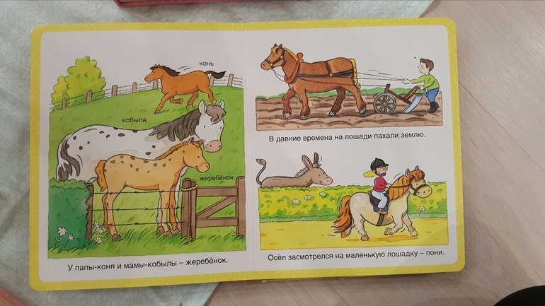 В каждой энциклопедии очень понятные рисунки с деталями. Есть небольшие задания. В книге заявлен возраст от 2 лет, но мы рассматриваем уже сейчас и пополняем пассивный словарный запас.