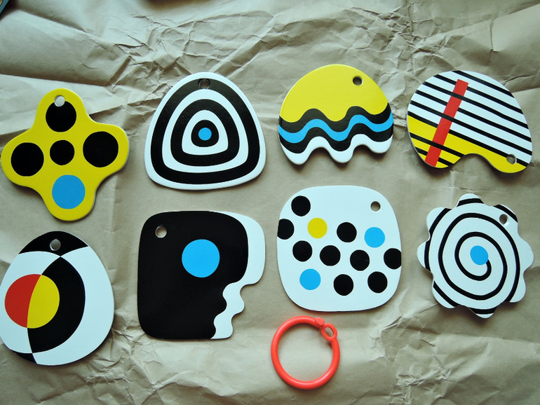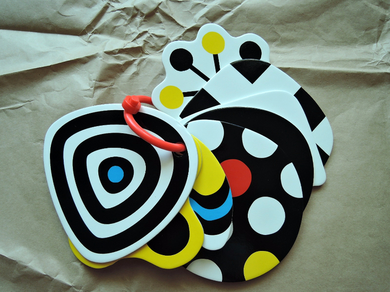 Я черно-белые картинки просто распечатывала и во время бодрствования ставила перед глазами с 2 недель и почти до 3 месяцев. Стефану очень нравилось их рассматривать. Сейчас старшая дочка их внучке показывает, ей тоже нравится