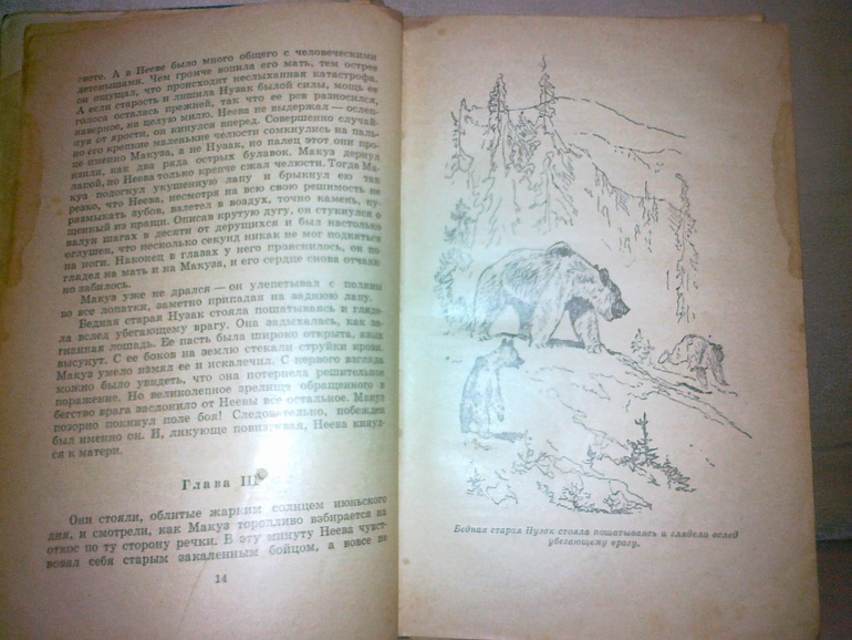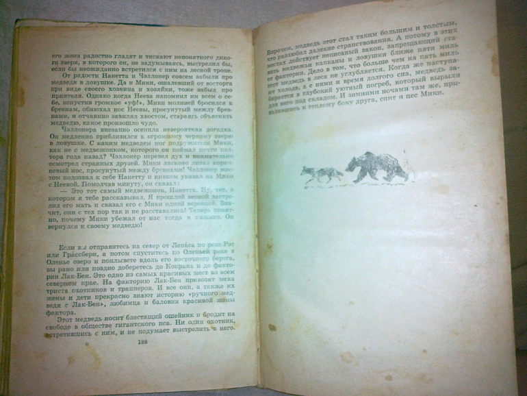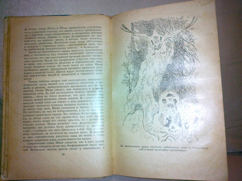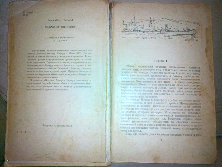 НО!! Одна книжка всё же каким-то чудом уцелела и стоит сейчас на сониной полке, ждёт своего часа!!!))) Эта совершенно ПОТРЯСАЮЩАЯ Бродяги Севера Джеймса Оливера Кервуда! Издание 1971 года. Мне кажется, я читала её всегда. Про невероятную дружбу медвежонка Неевы и щенка Микки, волею человека оказавшихся в одной связке... длиною в жизнь). Думая, что книга безвозвратно утеряна, как и все остальные, я решила заказать новую. Но... начала читать и поняла, что не хочу... Там медвежонка зовут НИВА, а моего звали мило, трогательно НЕЕВА, пусть неправильная транскрипция, но Неева мой, а Ниву я не знаюююю (прямо ныл во мне ребёнок). И вот счастье - книга нашлась!!! Обязательно перечитаю сама, и преобязательно почитаю Соне как дорастёт! Сама хочу ей прочитать).