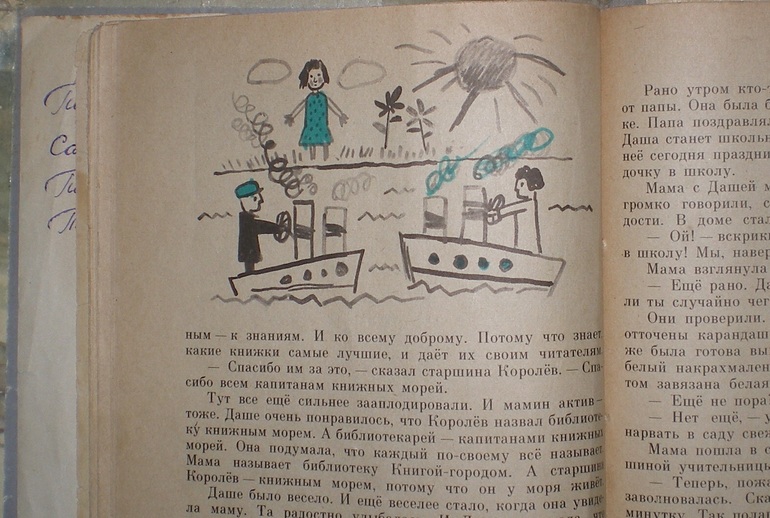 Когда подросла, разобралась с Дашиными рисунками, пыталась рисовать уже как иллюстратор. Разглядывала эти картинки тысячу раз. В конце концов поняла, что художник с меня точно не выйдет. А вот библиотекарем еще долго мечтала))