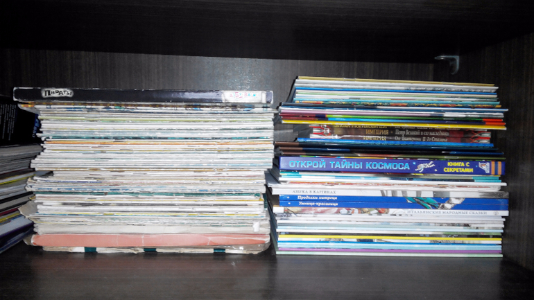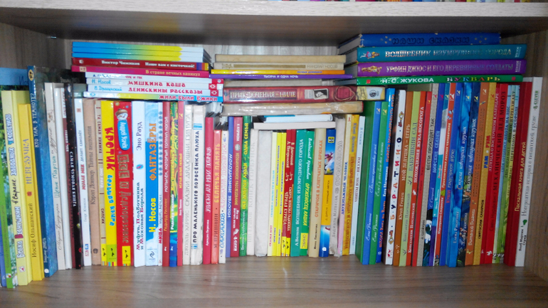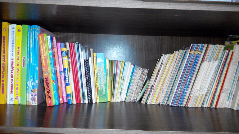 Хороший домик! Только наша библиотека в него бы не влезла: два стеллажа битком почти. А на вырост в шкафу еще. А мелкие и тонкие книжки я по пластиковым ящикам расставила, чтобы не падали.