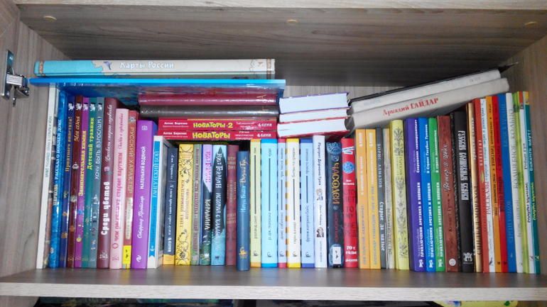 Особой системы в расстановке книг я не придерживалась. Поставила по издательствам. Пока расставляла-каждую книгу любовно пролистала)