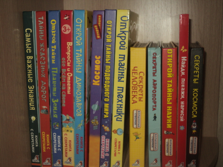 Вот такой наш книжный улов от чудного Робинс. Не все книги еще читаем. Пока не интересуется Тайнвми подводного мира и Тайнами техники, стоят на полке Тайны железных дорог и секреты аэропорта.