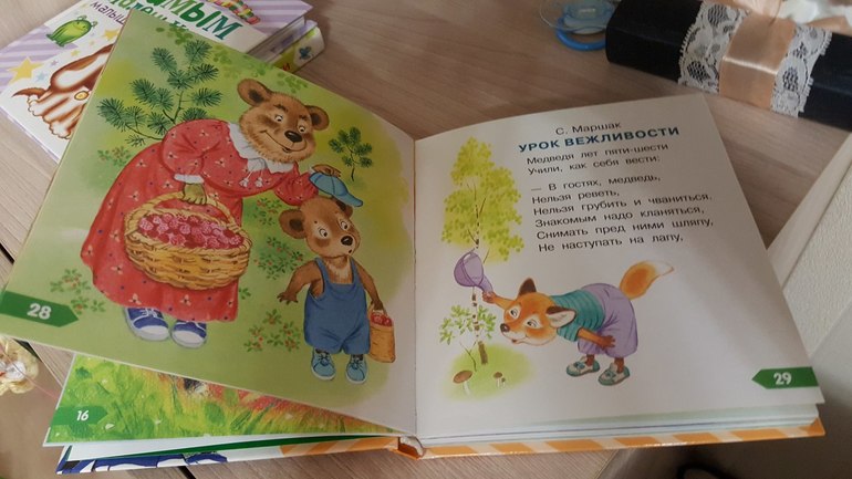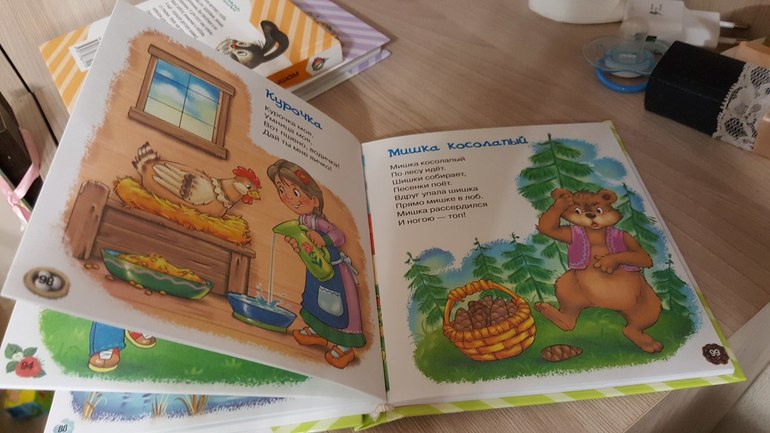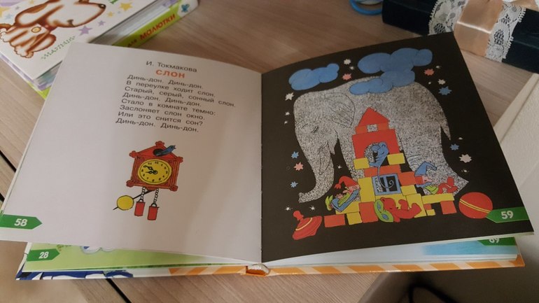 1. Иллюстрации - в одной книге несколько художников, из-за чего теряется общая идея книги, стиль, оформление.Хотя к отдельным стихотворениям рисунки очень даже (есть иллюстрации Бордюг, Трепенок, например).