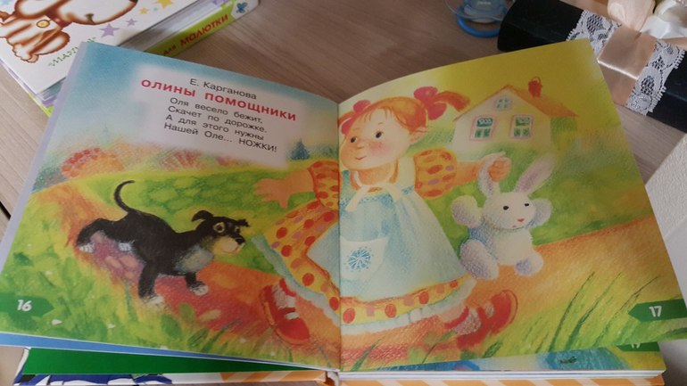 Анечке нравится стишок Олины помощники. Очень радуется, когда его читаю.